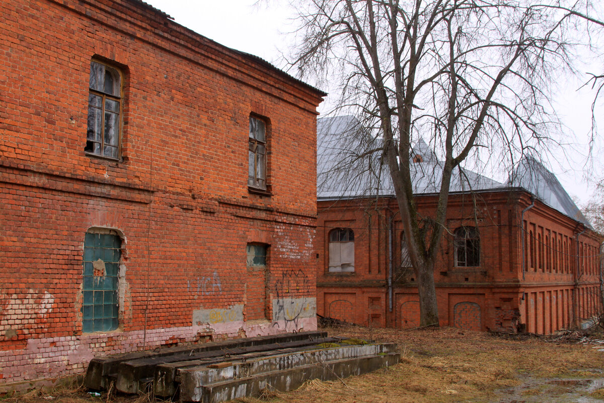 Идём дальше и уходим немного вглубь краснокирпичной застройки. Пройдя школу искусств, можно заприметить ещё один комплекс интересных зданий разного назначения. К сожалению, не все в хорошем состоянии.