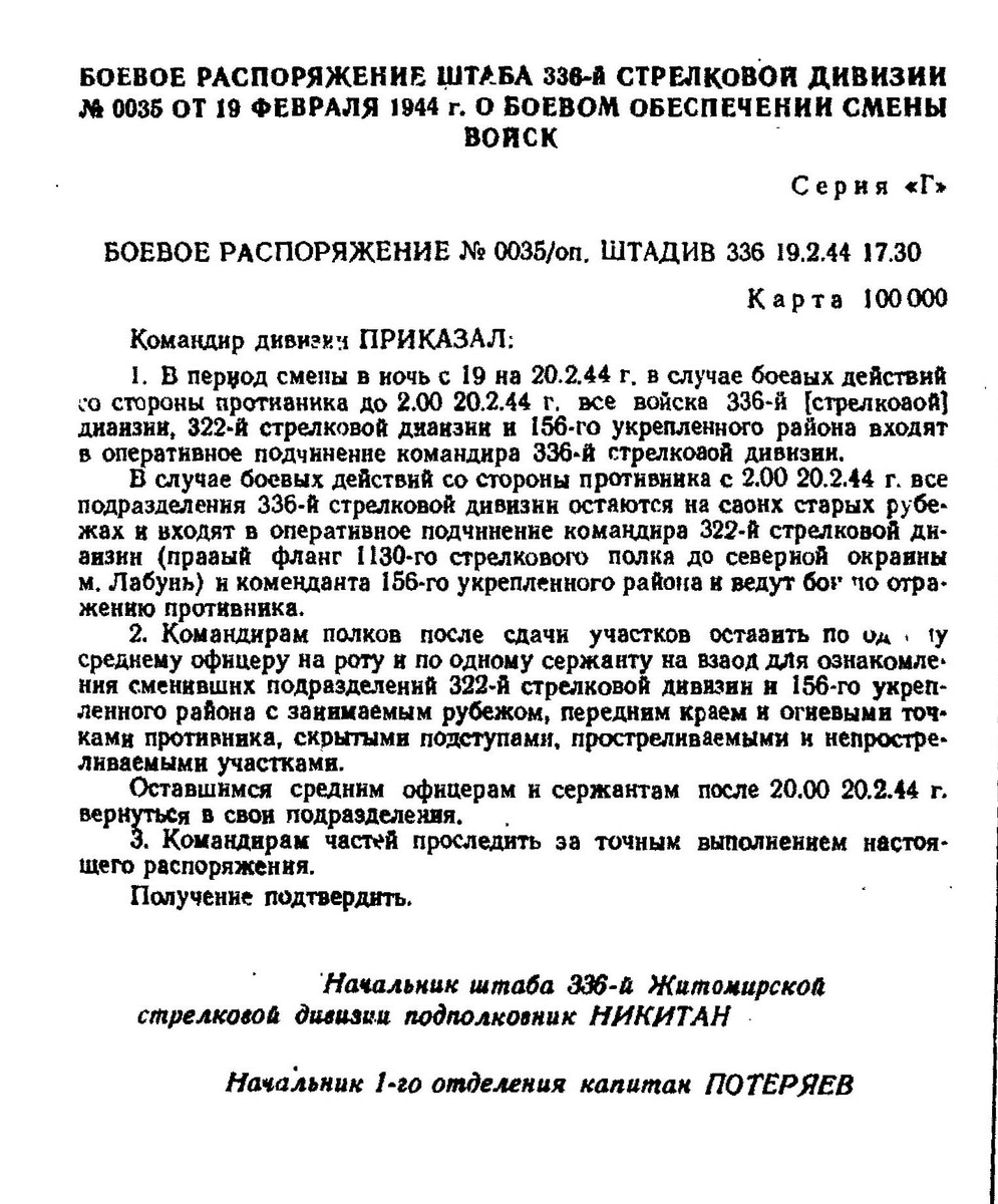 Просматривая сборник боевых документов, наткнулся на Боевое распоряжение штаба 336 сд о смене войск.