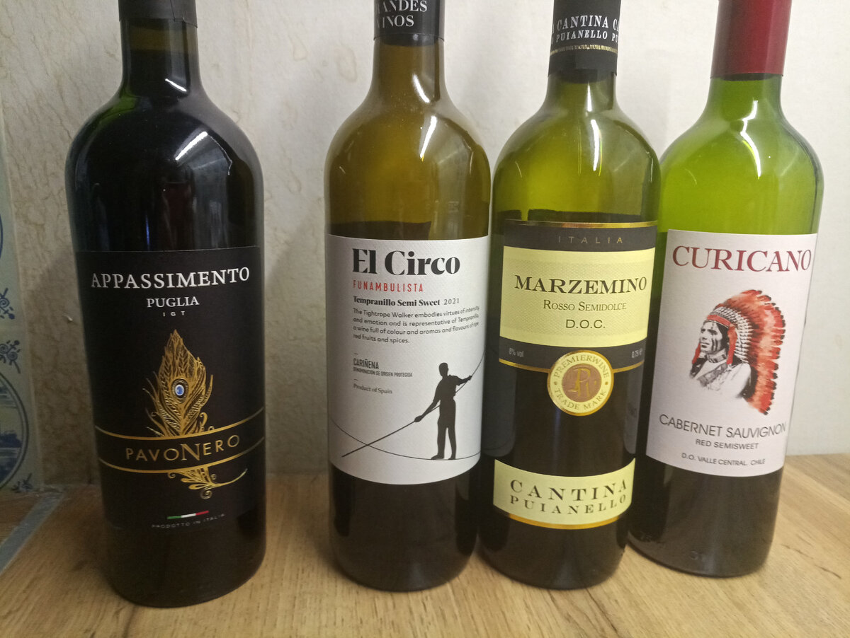 Полусладкие вина на нашем рынке можно разделить приблизительно на следующие категории: Хотя обычно я полусладкими винами интересуюсь не очень, в этот раз ко мне наполовину случайно (часть я приобрёл в сете на Invisible.ru) попали сразу несколько полусладких красных вин (там были и белые, про них возможно напишу позже), более близких к последней категории из вышеперечисленных. Ну что, есть что пить среди полусладких? Я решил это выяснить. 1. El Circo Funambulista Tempranillo Semi Sweet 2021. Тип: полусладкое красное DOP. Регион: Кариньена, Испания. Спирт: 13,5%. Сахар: 18-45 г/л. Импортёр: ЛаВИНА. Стоимость: 868 р. в каталоге дистрибьютора, от 1000 р. в винотеках. Сдержанный ягодный аромат, немного клубники. Довольно свежее, не очень сладкое. 85/100. Аккуратное столовое вино, отлично подойдёт тем, кто ещё не перешёл на сухие или уже не сможет перейти. Впрочем, для такого качества можно было бы и подешевле. 2. Cantina Puianello Marzemino Rosso Semidolce 2021. Тип: полусладкое красное DOC