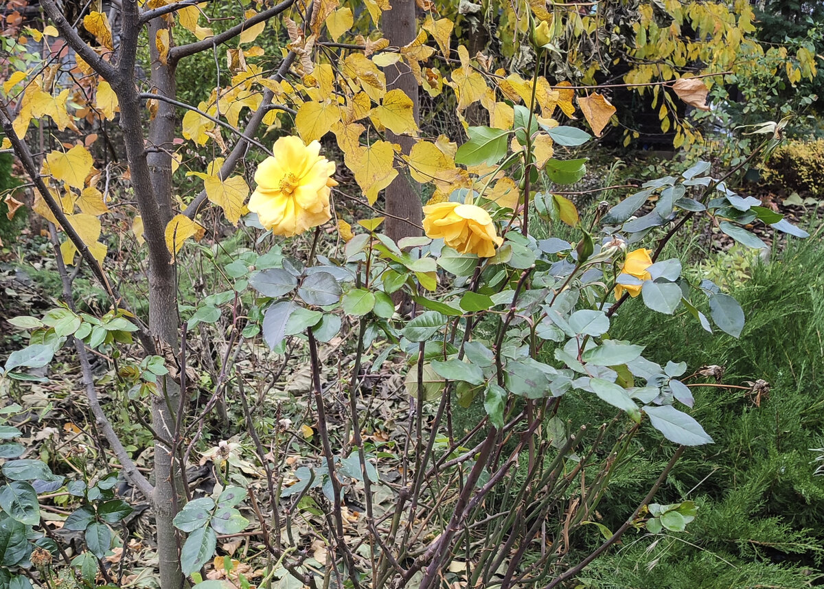 На самом деле их не так уж и много. Сегодня 2 декабря 2023 года и я дождалась этого срока, чтобы с уверенностью сказать, что такие розы есть и они радуют глаз, даже когда льют дожди, сыро и промозгло. Сегодня и завтра скорее всего последние очень теплые дни, будет холодать. В Армавире сегодня днем на солнце +18. Скорее золотая осень, еще несколько дней назад был снег, легкий заморозок, потом +6+11 градусов тепла. Температурные качели в последнее время стали привычными для нас, но растениям сильно достается. Перепады в 10-15 градусов для роз тяжелые. На них проснулись почки и вот-вот они тронутся в рост. У меня 25 сортов роз, сорта которых подтверждены и 11 роз - пересорт, о сорте которых могу только догадываться. Итак, первая роза и самая обильная - Рио Самба. Яркая, сочная, есть еще не распустившиеся бутоны. Это любимая роза моего мужа. Цветы у нее крупные. В октябре цветы были божественно красивы: Но ее сейчас на пьедестале начинает двигать другая роза, японская, сорта Каоликазали.