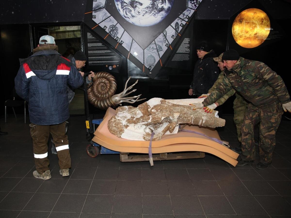 — Из-за массивности будущего экспоната и особенностей крепежной конструкции, часть реставрационных работ пришлось проводить на улице, — добавили сотрудники музея. — С приходом холодов череп поместили в основную экспозицию, где специалисты продолжат работу. Фото: Азовский музей-заповедник.