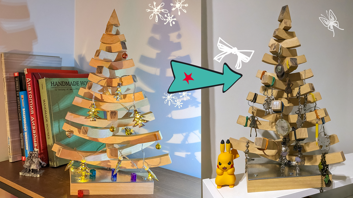 Идея как превратить дизайнерскую ёлку в модную вешалку для украшений