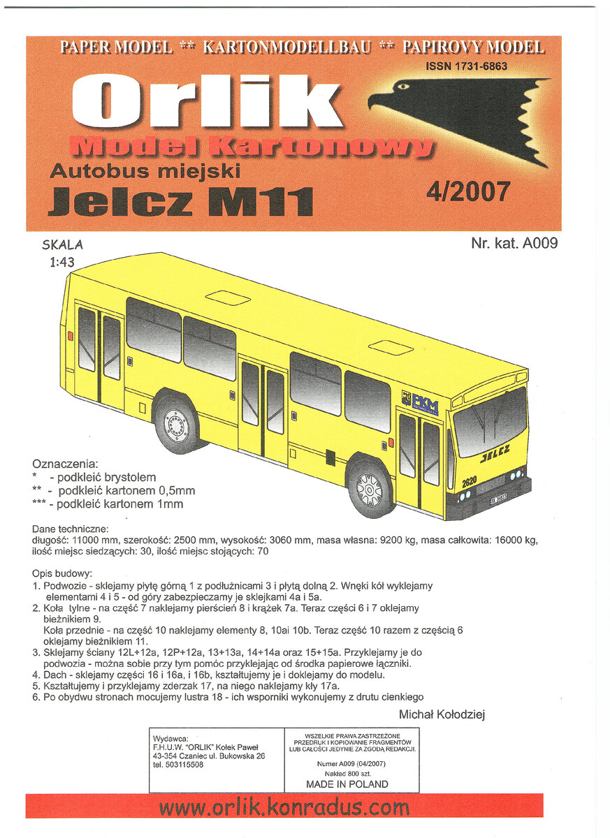 В сегодняшней публикации - сборка модели польского автобуса Jelcz M11 от польского же издательства Orlik. Использовался оригинальный журнал, но если кому-то нужен скан для самостоятельной распечатки и сборки - пишите свой e-mail в комментариях, я пришлю. Такие автобусы когда-то в 80-90хх годах прошлого века выпускались в Польше на шасси знаменитого Ikarus-260 Модель разработана для начинающих, все детали убираются на четырёх страницах. Сборку я осуществлял строго по инструкции, никаких доработок не делал, ну уж шибко всё несложно. Поэтому сразу покажу итоговый результат. Подробности сборки - как всегда на видео: