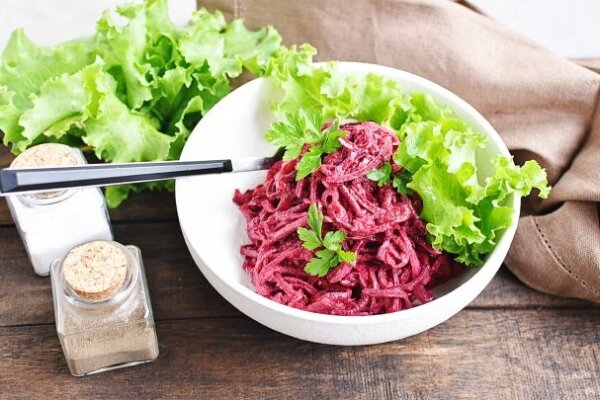Время приготовления: 30 мин Сырая свекла – просто кладезь витаминов! Мало какой овощ может соперничать со свеклой в соотношении цена-польза. Разве что лук, но из лука салата много не съешь. Делюсь рецептом вкусного салата. Больше рецептов можно найти на сайте. Описание приготовления блюда: Вкус у салата очень гармоничный, а состав достаточно лаконичный. Не заправленный майонезом, этот салат стоит в холодильнике дней 5, становясь лишь вкуснее и насыщеннее. Хотя, бесспорно, польза от свежеприготовленного в разы больше! Назначение: