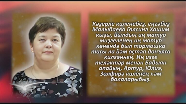 Ҡәҙерле киленебеҙ, еңгәбеҙ Малыбаева Гөлсинә Хашим ҡыҙы, йылдың иң матур миҙгеленең иң матур көнөндә был тормошҡа тағы ла йәм өҫтәп донъяға килгәнһең. Һинең үткән тормош юлыңа боролоп ҡарап тик һоҡланырға, өлгө алырға ғына була. Үҙ мәлендә бынамын тигән тормош юлдашы осратып, береһенән-береһе матур, аҡыллы, балаларға ғүмер, өлгөлө тәрбиә, белемдәр биргәнһегеҙ. Күптәр һоҡланырлыҡ, үрнәк алырлыҡ донъя көтәһегеҙ. Гөл-сәскәләргә, матурлыҡҡа күмелгән донъяғыҙ күҙ яуын алһа, һеҙҙең өлгөрлөк, уңғанлыҡ, оҫта ҡулдарығыҙ, яғымлы йөҙҙәрегеҙ күптәрҙе һоҡландыра. Киләсәктә лә ошо матур сифаттарығыҙ, бәхетегеҙ һеҙҙе ташламаһын ине. Һеҙгә һаулыҡтың иң ныҡлыһын, ғүмерҙең иң оҙонон, бәрәкәтлеһен, күңел тыныслығы, донъя бөтөнлөгө теләйбеҙ. Үҫтергән, тәрбиәләгән балаларығыҙҙың изгелектәрен күреп, уңыштарына ғорурланып, һәр береһенең донъя ҡорғанын күреп, ейән-ейәнсәрҙәр тәрбиәләшеп, улар ыңғайына дәртләнеп, йәшәреп йәшәргә яҙһын! Иң изге теләктәр менән Бадыян апайың, Артур, Юлиә, Зөлфирә киленең һәм бала