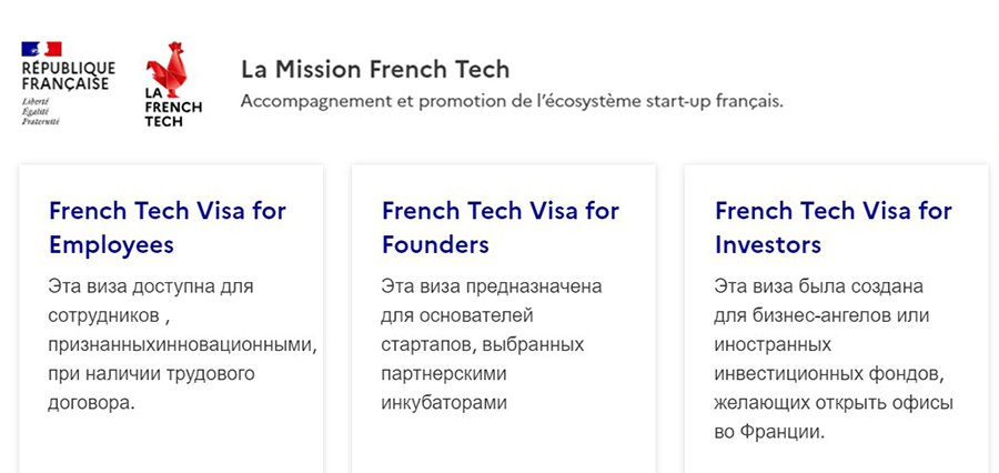 Для открытия бизнеса во Франции следует ориентироваться на программу French Tech Visa, которая позволяет получить разрешение на пребывание по упрощенной процедуре. French Tech доступна для трех категорий соискателей – сотрудников, учредителей и инвесторов.