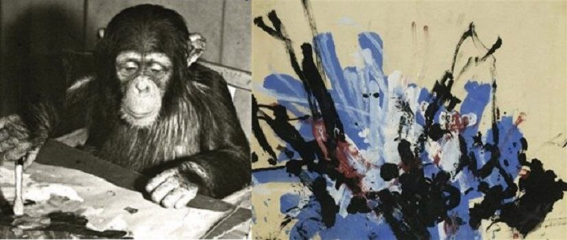 🦍🎨Однажды в Лондонском зоопарке появилась уникальная обезьяна - шимпанзе Конго. Широкой телевизионной публике он был представлен, как нетривиальный живописец. 🎥♻️Британский зоолог и антрополог Десмонд Моррис рассказал о нём в специальной программе о животных Zoo time. Так началась художественная карьера молодого примата. 🖼В 1957 году картины шимпанзе Конго были представлены на выставке, организованной в его честь, в Институте современного искусства под названием "Молодая идея". 🎉Первый успех и признание его картины получили среди художников-абстракционистов, картины примата приобрели Пикассо, Дали и другие художники. 🦧В 1964 году шимпанзе умер от туберкулеза, но за свою недолгую жизнь Конго нарисовал 400 картин в стиле живописи абстрактного экспрессионизма. И почти через 60 лет его искусство пользуется спросом и поднялось в цене. ⚡️В 2005 году состоялась первая продажа нескольких работ Конго. Тогда они были проданы за 25 тысяч долларов на местном аукционе. 😵В 2019-