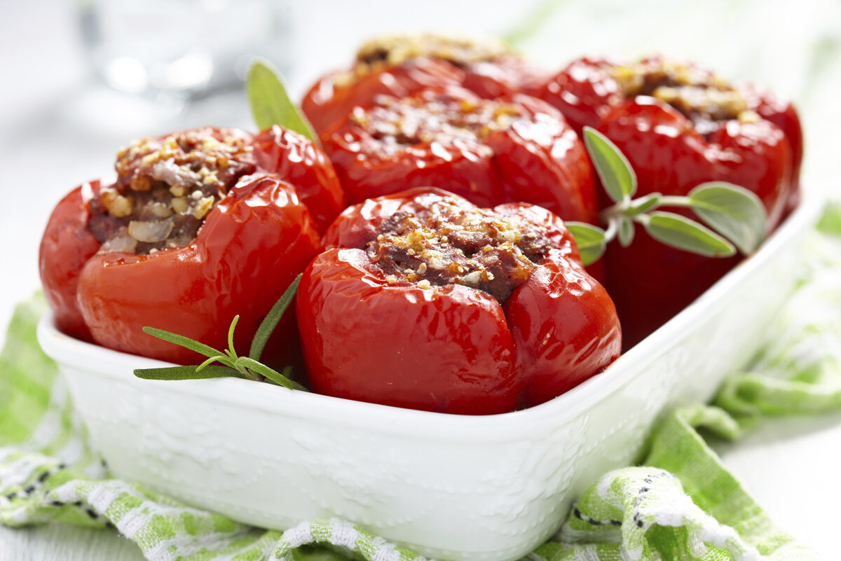 Ингредиенты: - 6 больших перцев (любого цвета) - 300 г мясного фарша (говядина, свинина или смесь) - 1 луковица, мелко нарезанная - 2 зубчика чеснока, измельченные - 1 стакан вареного риса - 1 банка томатной пасты - 1 чайная ложка паприки - Соль и перец по вкусу - 1 стакан горячего куриного бульона - 1 чашка тертого сыра (по желанию) Инструкции: 1. Разогреть духовку до 180 градусов. 2. Разрезать перцы вдоль и удалить семена и стебель. Выложите их в форму для запекания. 3. В миске смешайте фарш, лук, чеснок, вареный рис, половину томатной пасты, паприку, соль и перец. 4. Наполните каждый перец фаршем и уложите их в форме для запекания. 5. Смешайте оставшуюся томатную пасту с куриного бульоном и аккуратно вылейте эту смесь вокруг фаршированных перцев. 6. Посыпьте сверху сыром, если используете, а затем накройте форму для запекания фольгой. 7. Запекайте при 180 градусах около 25-30 минут. Затем снимите фольгу и запекайте еще 10-15 минут или до золотистой корочки. Готово, прия