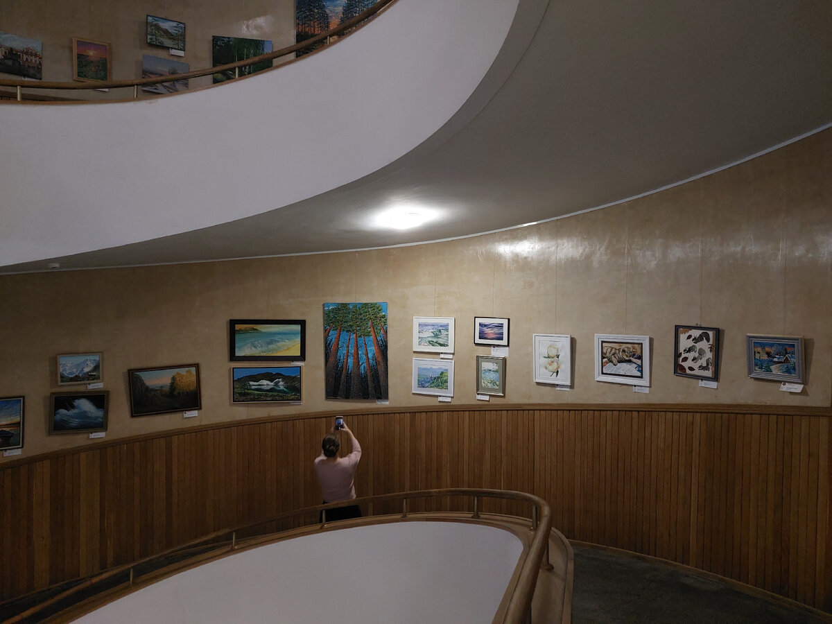 Уникальное выставочное пространство, размещенное на 6 ярусах открытого пандуса, позволяет охватить взглядом несколько уровней экспозиции сразу и получить общее представление о мастерстве современных художников. А также можно подойти к каждой работе и вблизи внимательно рассмотреть все детали.