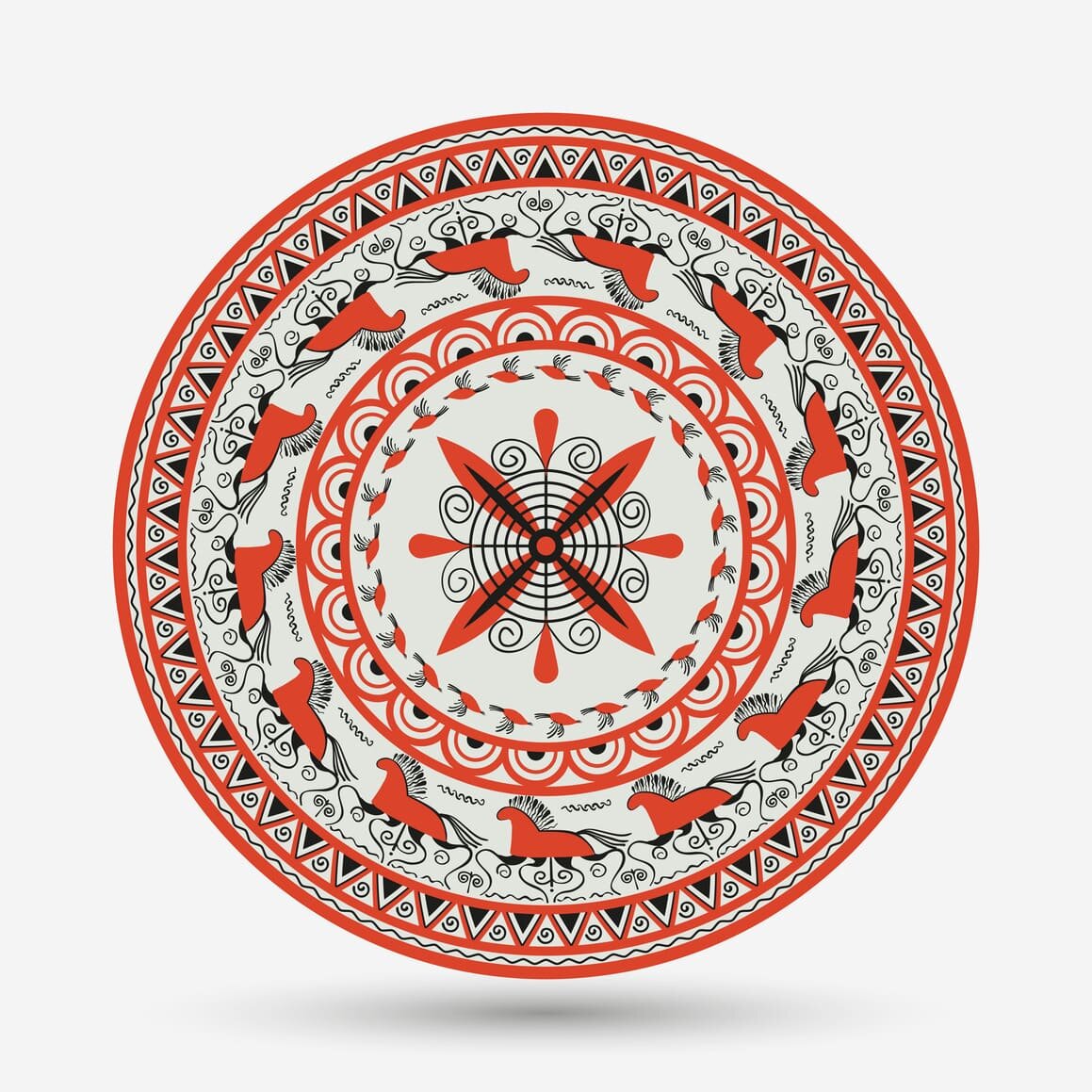 Ученые считают, что в древности люди в принципе выделяли всего три основных цвета: белый, черный (+ серый как результат их смешения) и красный. Именно эту триаду мы увидим в наскальных рисунках, росписях керамики, вышивках по всему миру… Мезенская роспись также находится в этом ряду.