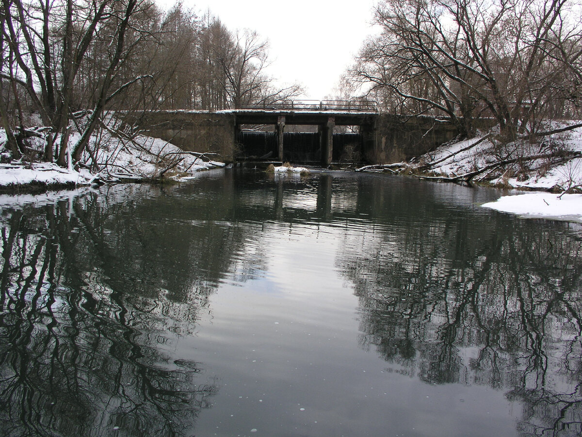 Истоки размещения здесь первого моста-плотины уходят в начало 1700-х гг. Современное строительство гидротехнического сооружения (ГТС) осуществлено Госкомтрудом СССР в 1967 году. Это основной момент, следы которого несут главную опасность: сооружению минуло 56 лет со дня постройки, и практически оно не обслуживается вот уже 30 лет.