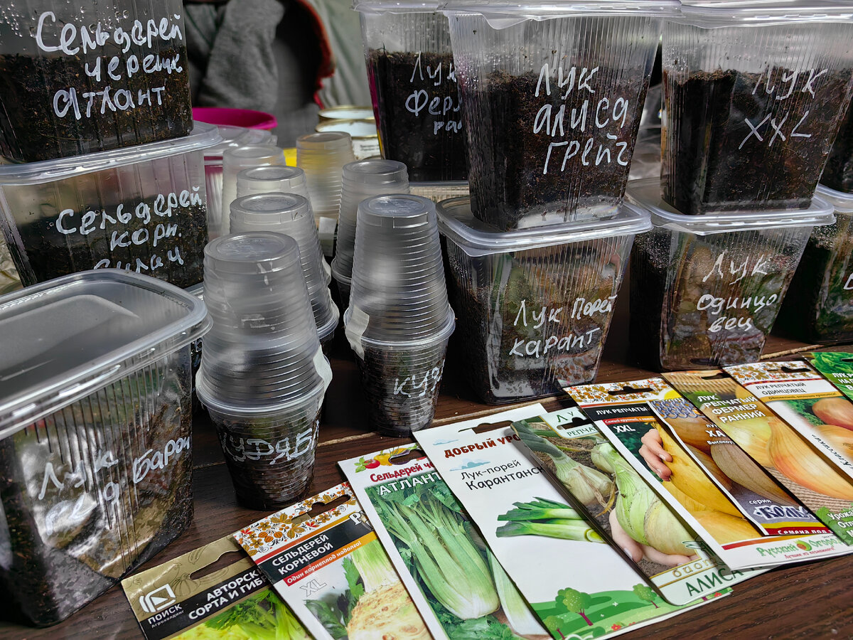 Луки я посеяла 14 марта 2023г, ниже фото всходов от 28 марта 2023г. Семена у меня были россыпью из профессиональной пачки, так что красивой картинки пакетика нет. Для посадки я брала высокие емкости. Накрывала крышками до появления всходов, а дальше снимала крышку и лук рос уже как есть.