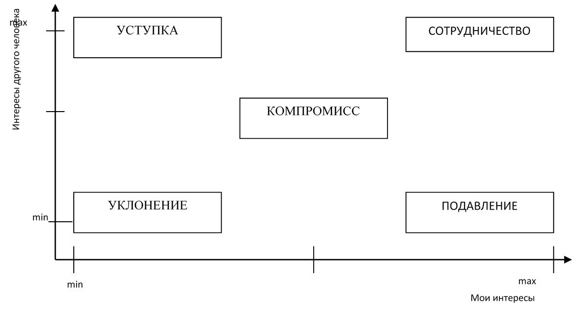 2. Уступка (приспособление). Подстройка под собеседника, отказ от своих интересов. Один собеседник уступает другому. При этом приспосабливающийся часто делает вид, что ничего не произошло, скрывая свои негативные эмоции.