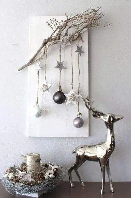 Канун Нового года − идеальное время для творческих экспериментов. Подготовка к встрече Нового года и украшение дома позволяют создать праздничную атмосферу не только на сам праздник, но и на весь период новогодних каникул. Несколько идей для новогоднего оформления дома. 🔺Новогодняя картина. Белый холст является основой, на которую крепятся сухие ветки дерева. Их фиксируют с помощью клея или бечевки. Затем прикрепляют новогодние игрушки, гирлянды, мишуру. 🔺 Дрифтвуд Одна из вариаций новогоднего декора. Необходимо собрать 6–10 деревянных веток средней толщины и разной длины. Покрасить их в белый, зелёный или любой другой понравившийся цвет. Затем просверлить ветки слева и справа так, чтобы можно было пропустить нитку или бечевку, и скрепить их вместе. Затем повесить эту необычную елку на стену и украсить новогодними игрушками, украшениями из матового золотого или серебряного новогоднего декора. А если в квартире недостаточно места для установки елки? Или, может быть, вы поклонник мин