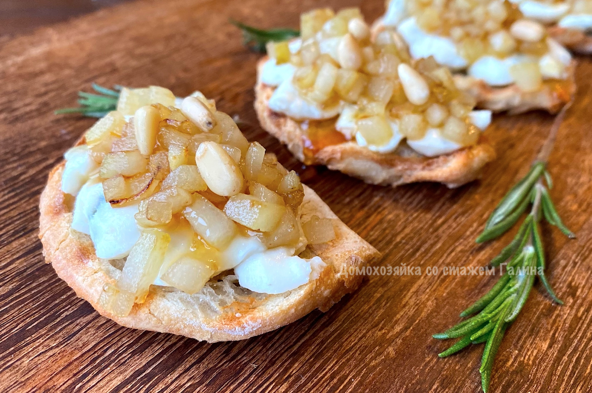 Оригинальная закуска с ярким вкусом и ароматом: пикантная брускетта с грушей