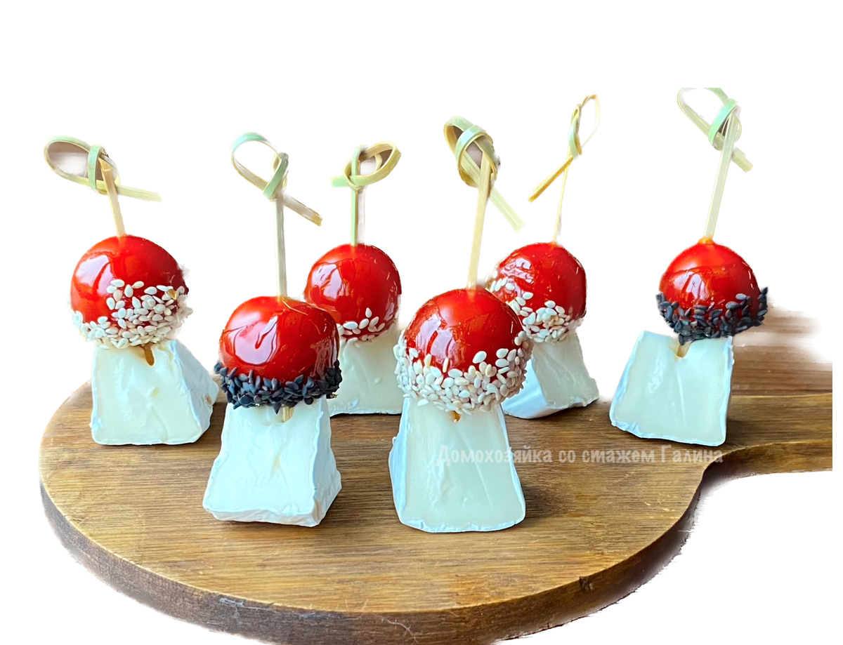 Здравствуйте, дорогие читатели! Это что-то новое для меня, думаю, для вас тоже. Вы уже знаете, что я люблю экспериментировать с едой, в рамках разумного, конечно. Недавно смотрели с дочкой кулинарный канал и там блогер делал интересную закуску из помидоров черри. Я зацепилась за эту идею и решила, что тоже хочу попробовать. Получилось итересно на вид, но на вкус странно 😁. Собственно говоря, вкус можно легко представить, помидоры в сахаре. Думаю, если так сделать дольки мандаринов или любые ягоды, будет интереснее. Томаты больше делать не буду, это того не стоит. А вы сами решайте, надо вам это или нет 😉. Вывод: как декор для блюд с закусками можно сделать, но для еды 🙄, наверное, не годится. Итак, в сотейник всыпала сахар, влила воду и сок лимона. По желанию можно капнуть бальзамический уксус, он к томатам подходит. Помидоры промыла и обсушила, вставила шпажки. Для красоты можно воткнуть веточки розмарина. Сотейник поставила на огонь и проварила до растворения сахара на сильном огн