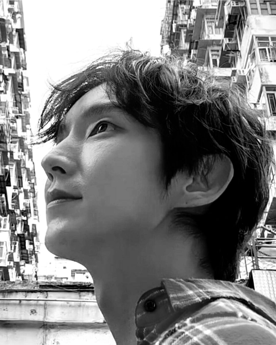 Цветной Джуня выглядит довольно лайтово (если не сказать гламурно) в своей красной клетчатой рубахе. Но если перевести фото в ч/б - воображение рисует Джуню героем гонконгской артхаусной драмы (обязательно ретро!), где главной темой видится поиск самого себя в токсичных условиях плотной застройки
