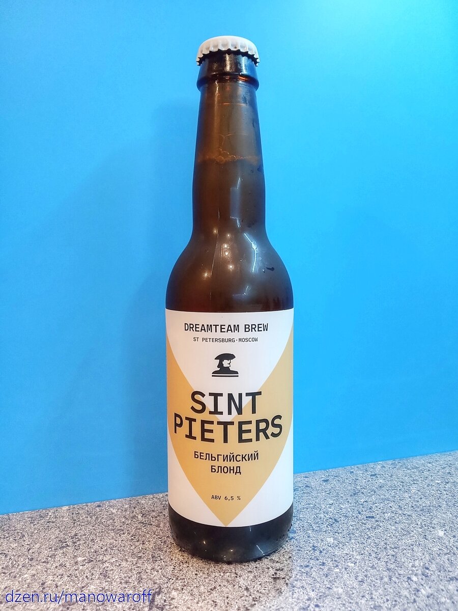 Сегодня у нас снова пивоварня Dreamteam Brew. На сей раз с бельгийским блондом под названием Sint Pieters. Мужик на этикетке действительно напоминает Петра. Только не Святого, а Первого. Появился сорт в декабре 2021 года. И вот что о нем рассказывают пивовары: Эталонный бельгийский светлый эль. Фруктово-пряная нота дрожжей от культового траппистского аббатства, солодово-сладкий вкус, сухой финиш и лёгкая согревающая алкогольная теплота — стиль и в праздник и в будни. На момент дегустации моей бутылке пива было чуть больше недели. Свежак. Срок годности - 270 суток при комнатной температуре. ТТХ: Пиво прозрачное. Пены не особо много, продолжительность жизни средняя. В аромате солод и фрукты со специями. Во вкусе тоже солод, сладкие фрукты и пряности. Послевкусие сладковатое, пряное. Пиво полнотелое, пьется нормально. Поскольку я не любитель данного стиля, то объективно оценить сей пивас не могу. К тому же, он для меня чересчур сладкий. Так что поставлю семерку. В "Отдохни" стоит 195 руб