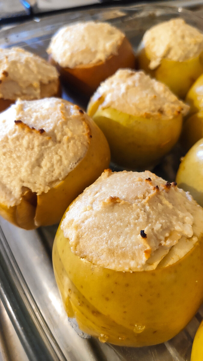 Нам понадобится: Яблоки (у меня было 11шт) Творог 2 упаковки по 180 грамм Сахар, сахзам, сахарная пудра или мёд по вашему вкусу и желанию Корица 1/2 ч.л Первым делом нужно хорошенько промыть яблоки, желательно это сделать со специальным средством, чтобы смыть воск, которым обрабатывают фрукты. У меня такого средства нет, поэтому я либо замачиваю с собой, либо просто губка с ферри. Следующим шагом нам нужно срезать шапочки у яблок (верхушку, где часть веточки) и с помощью ложки или ножа вытащить сердцевину. Начинка довольно простая: творог, любой подсластитель (сахар, мёд и так далее) и я ещё добавляла корицу. Всё перемешиваем и с помощью ложки начиняем яблочки. Еще нужно будет проколоть вилочкой каждое яблочко, чтобы кожура не лопнула в процессе готовки. Отправляем в духовку 150 градусов примерно на 1 час. Готово❤