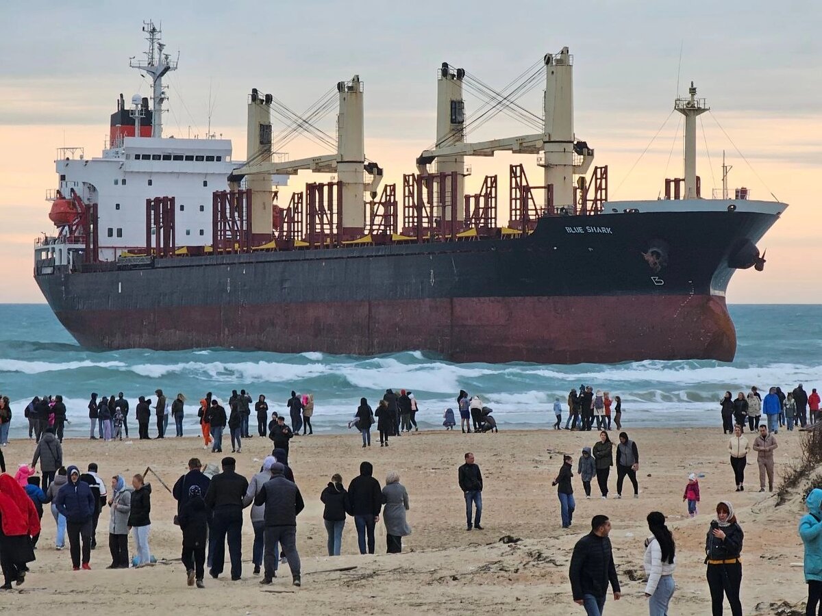 Анапу охватило «корабельное безумие» Кажется, в эти дни на берег моря в районе села Витязево, где находится севший на мель сухогруз «Blue Shark», устремилась вся Россия. В минувшую субботу на пляже наблюдалось самое настоящее столпотворение. Сверху судно осматривают парящие в воздухе кайтсёрферы. Даже в разгар летнего сезона здесь не всегда так много народа. На дорогах в самом Витязево наблюдаются пробки, на проходах к морю открылись торговые точки. В сонном зимой селе жизнь сейчас бьёт ключом. Ушлые предприниматели предлагают экскурсии к сухогрузу из всех уголков Кубани и даже соседних регионов по цене от 700 рублей и до бесконечности, обещая «обзорную экскурсию на корабль», не упоминая о том, что на корабль придётся любоваться с берега. Власти Анапы устранились от происходящего, по крайней мере, молчат и никак не реагируют на ситуацию управления муниципального контроля, санкура, торговли, ЖКХ. Пляж вытаптывается тысячами ног, кучи мусора только прибавляются, автомобилисты, вопр
