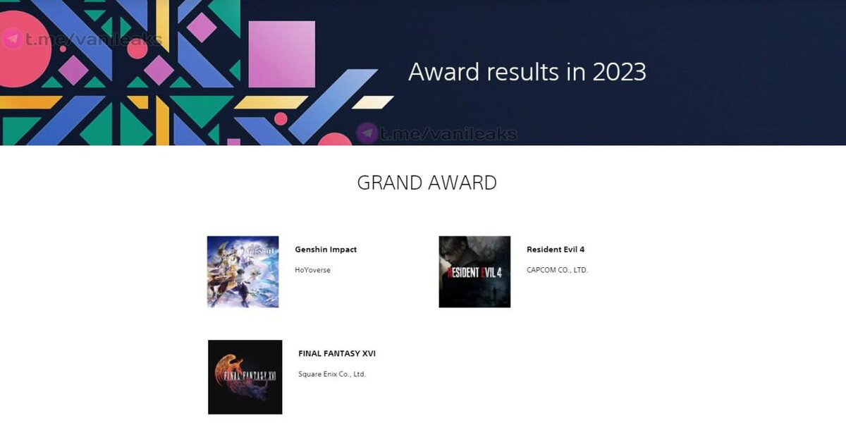 Genshin Impact победила в номинации PlayStation® PARTNER AWARDS 2023 GRAND AWARD!