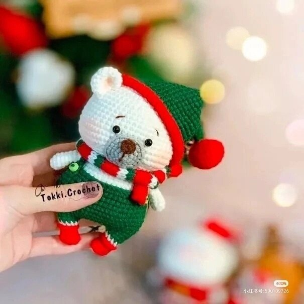 Автор: Tokki.Crochet Мастер-классы публикуемые на канале были найдены в свободном доступе в интернете. Материалы - зеленый - красный - белый - серый - коричневый Условные обозначения Мордочка Вяжем серой пряжей. 1. 6 сбн в КА (6) 2. 6 пр (12) 3. (сбн, пр)*6 (18) 4. (сбн, пр, сбн)*6 (24) Мордочку пришиваем между 16 и 23 рядами.