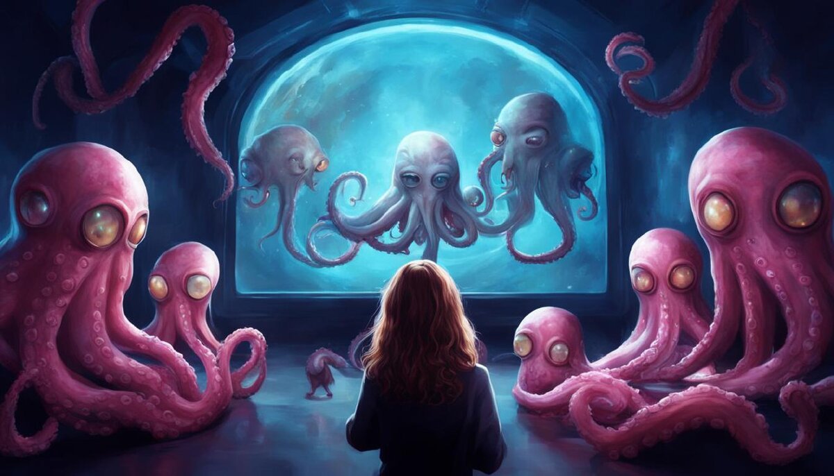 Начало заседания учёного совета задерживалось: не включался проектор. Лаборант, ответственный за техническое сопровождение, от волнения стал ярко-зелёным. Три пары щупалец нервно метались по сенсорной панели с разноцветными огоньками.