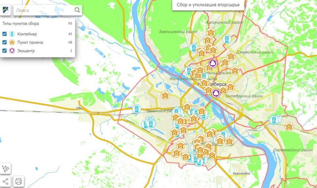 Интерактивную карту пунктов приема вторсырья создали в Новосибирске