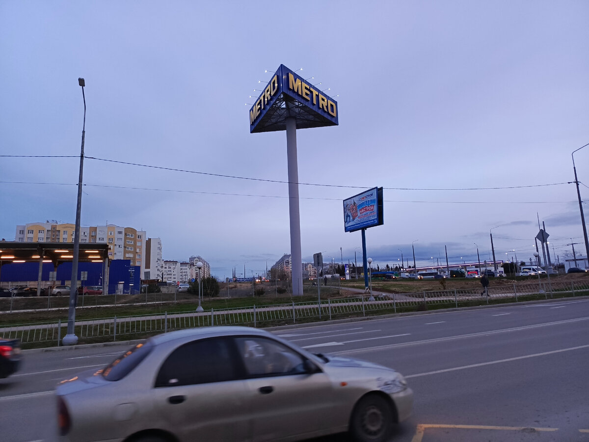 Проходим мимо магазина METRO, а с другой стороны находится школа.