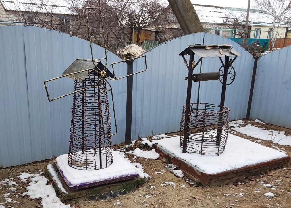 Специально к Новому году сделал несколько изделий для украшения перед двором. Все изделия сделаны из обычной старой проволоки и труб. Все это зачищалось, гнулось, приваривалось, затем красилось, вообщем проведена большая работа, но она того стоит. С наступающим праздником друзья Далее чисто новогодняя тема, снеговик и елочка. И украшаем все это разноцветной уличной гирляндой Все изделия можно сказать сделаны из обычного металлолома.