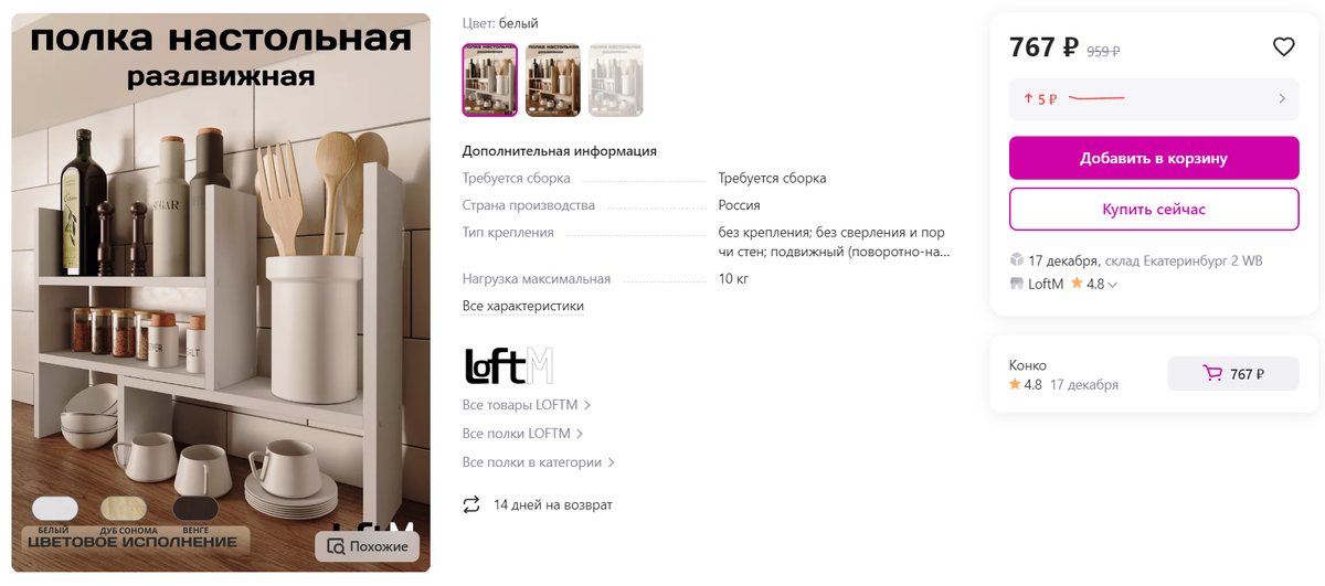 Привет! На связи Рыжая Снегурочка, подготовила для вас подборку товаров с маркетплейса для вашей кухни, надеюсь она будет вам полезна) 1. Полка для специй Как же хочется упорядочить кухонное пространство, чтобы все лежало на своих местах. Но порой места слишком мало, поэтому на помощь может прийти такая полка. Артикул - 169488012 Рейтинг - 4.8 Покупала дочери на кухню,,, хочу сказать, что такая полочка находка,,,т,к, трансформер- много специй - расставить и все помещается. Но кроме специй можно расположить и сахарницу, соль, полотенце держатель вертикальный,,, да много всего! Фантазия хозяйки!!! Спасибо ! Все качественно сделано и сборка легкая, так играючи собрала,,,, 2.Ковер безворсовый Если у вас нет подогреваемого пола и вашим ногам в кухонной зоне холодно, то пора подумать о теплом коврике. Коврик оснащен нескользящим покрытием, поэтому можете не беспокоится о безопасности использования. Артикул - 102141097 Рейтинг - 4.8 Отзыв Отлично смотрится. Тоньше чем палас. Но качество х