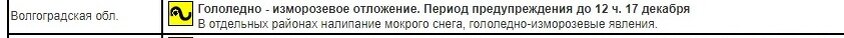 Синоптики выдали экстренное предупреждение о гололеде на всей территории Волгоградской области. В эти часы региону присвоен «желтый» класс опасности из-за явления, которое представляет из себя последствие зимней непогоды. По информации федерального Гидрометцентра РФ, предупреждение о гололедно-изморозевых отожениях актуально до 12 дня 17 декабря. - В отдельных районах налипание мокрого снега, гололедно-изморозевые явления. Не столь оптимистичны по поводу гололедицы волгоградские синоптики – ЦГМС. Здесь говорят, что опасный гололед, в первую очередь, он угрожает автолюбителя и пешеходам, будет преследовать волгоградцев в течение трех ближайших суток. Речь о нем идет до 18 декабря, которое выпадает на рабочий день, понедельник, когда горожане массово отправятся на работу и по делам. По информации волгоградских синоптиков, сегодня днем 16 декабря в районах области днем без осадков, в отдельных районах при этом можно столкнуться с налипанием мокрого снега на проводах и деревьях, гололедице