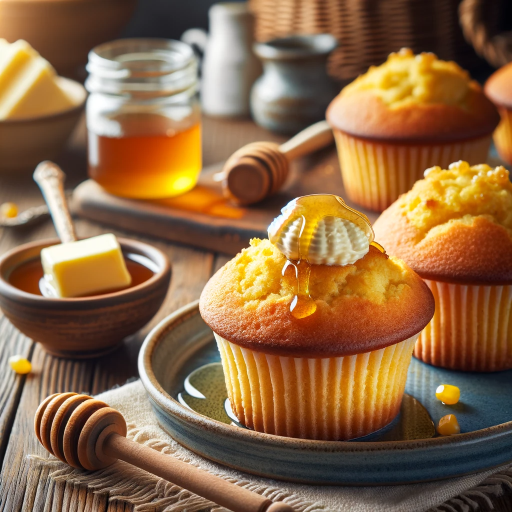 Давайте приготовим Кукурузные кексы с медовым маслом. Ингредиенты: Медовое масло: Приготовление: Для медового масла: Сервировка: Подавайте кексы теплыми с медовым маслом сверху. История блюда: Кукурузные кексы - это классика американской кухни, уходящая корнями в кулинарные традиции южных штатов. Рассказывают, что рецепт был изобретен фермерами, которые искали способ использовать излишки кукурузы. Медовое масло добавили позже, чтобы придать блюду более изысканный вкус.