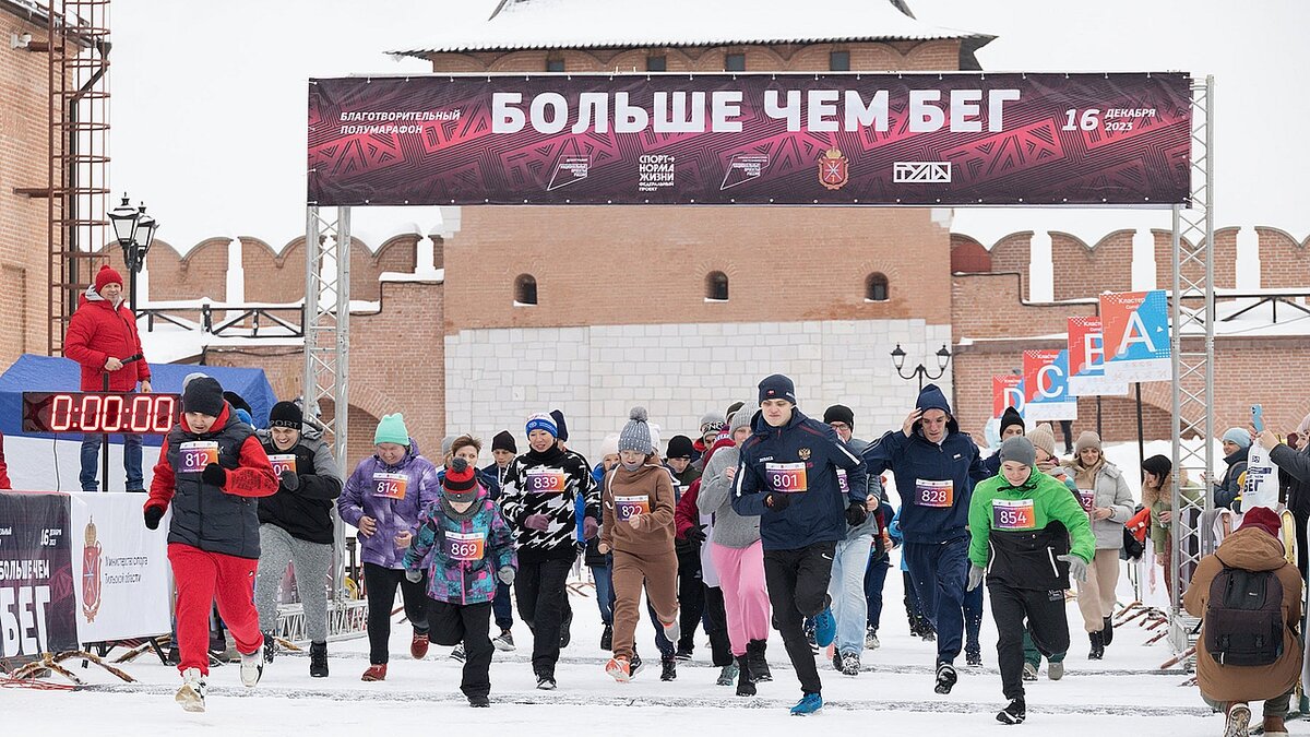 В благотворительном массовом забеге «Больше чем бег», который прошел в центре Тулы в субботу, 16 декабря, приняли участие порядка 700 любителей бега. Участники прибыли в заснеженную Тулу из 21 региона России. Самому опытному бегуну – 80 лет, а самому юному – 4 года. Забег прошел в Туле впервые в рамках федерального проекта «Спорт – норма жизни» нацпроекта «Демография», инициированного Президентом РФ. Одной из целей мероприятия был сбор средств для ребёнка с диагнозом ДЦП. Дистанции проложили по Казанской набережной и территории Тульского кремля. Можно было бежать 300 и 600 метров, 5, 10 километров и максимальный маршрут – 21,1 км. По сообщению пресс-службы правительства Тульской области.