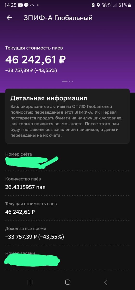 Добрый день, уважаемые читатели. У Сбера много разных фондов и сейчас. А до 22.02.2022 было ещё больше. И вот в один из этих фондов я вложил небольшую сумму в районе 80 тыс рублей. Сначала он рос, потом замёрз. И вот сегодня, в субботу мне прислали СМС о том, что форма фонда изменилась с открытого на закрытый и проведена переоценка. Продавать ничего нельзя, но на счету уже на 44% меньше денег, чем было изначально. Ну, так себе рост американского рынка))). Хорошо, что я активно выходил из многих иностранных акций и фондов в 2021-начале 2022. Как чувствовал. Но не имеет всех удалось выйти... А у вас есть фонды финекса и т.д., замороженные? С уважением, Кот Учёный