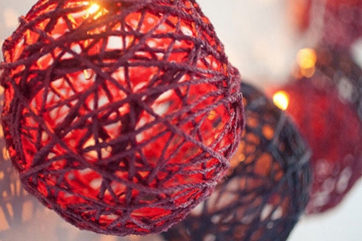 3. Достаем из закромов пряжу или толстые шерстяные нитки, смачиваем их в клее и аккуратно наматываем на шарик, чтобы получилась сфера.