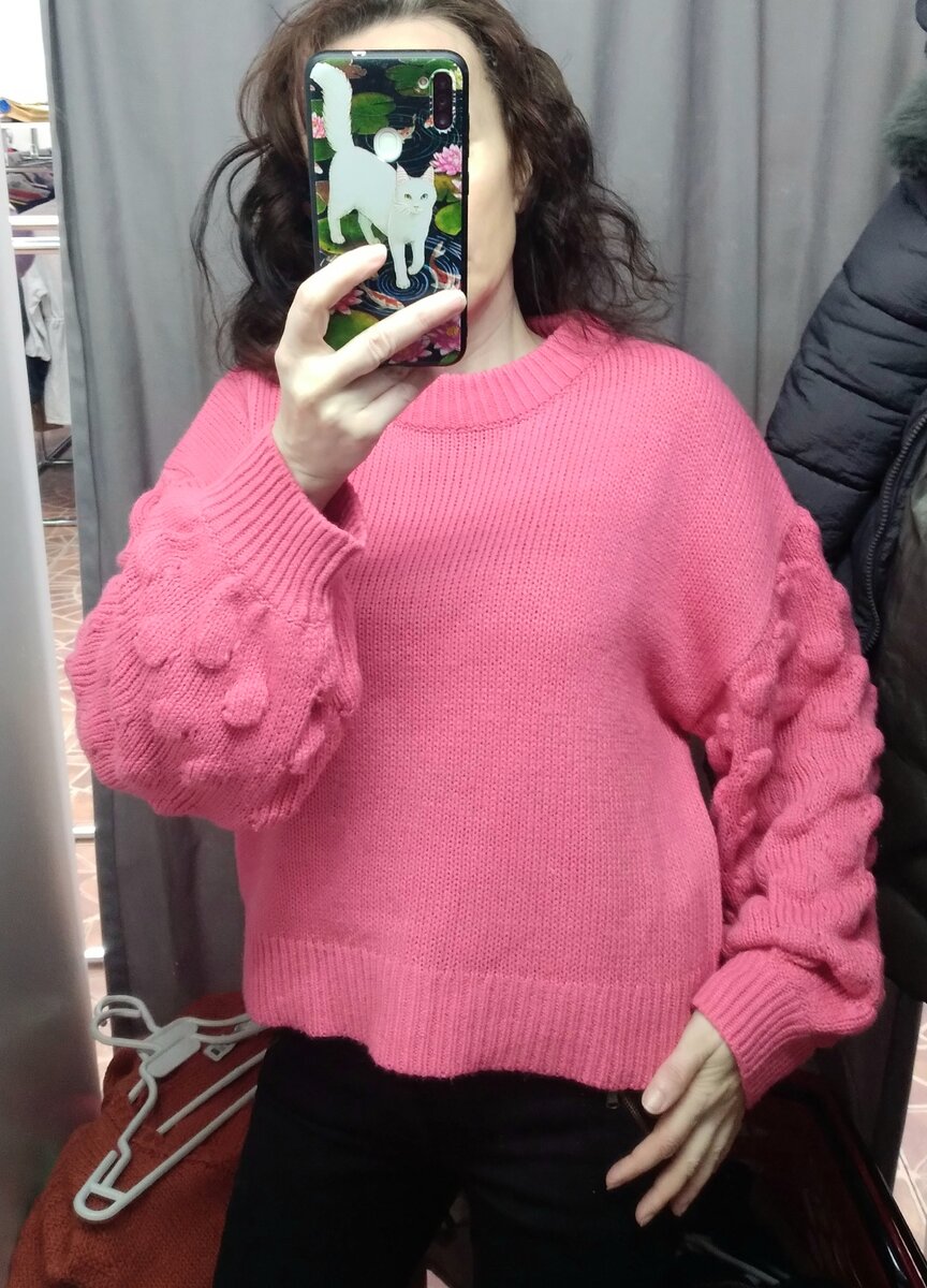 Здравствуйте. Продолжу обзор из Столичного гардероба, всё можно было купить со скидкой 80%. Розовый джемпер. Не люблю я джемпера, но такой я бы взяла и за суперский цвет, и за пупырчатые и пышные рукава. Но единственное, что по мне это горловина, всё остальное какое-то растянутое, а уж рукава какие длинные. Полная цена 1600 рублей. Хлопок и акрил. Полосатый джемпер из плотного трикотажа. Полоски как подогнаны, прямо тютелька в тютельку. Хлопок. 1600 рублей. H&M И пара жакетов. Однобортный жакет на подкладке, классическая модель и классический " собачий клык", на карманах узкий чёрный кант . Чуть-чуть приталенная модель. Вискоза и синтетика. 2100 рублей. А этот женственный и кокетливый. Если не ошибаюсь, то ткань шанель, она мягкая и рыхлая, с узелкам. Красивый синий цвет, края не подшитые, а просто лохматые, отделка белой тесьмой расшитой жемчугом . Прямая модель и застегивается на крючок. 1700 рублей. Серый кардиган на пуговицах. Простая гладкая вязка, но нитки с серебром, конечно на