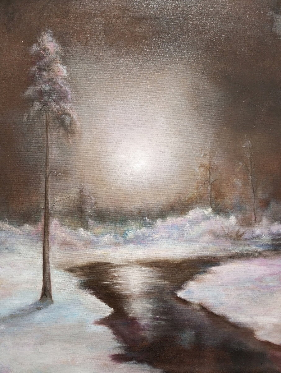 Сегодня у нас есть счастливая возможность насладиться творчеством ВИКТОРИИ КУСКОВОЙ, художника из г. Череповец Вологодской области. Невозможно не обратить внимание на неброскость красок, которыми написана эта картина, и в то же время, невозможно не признать её элегантность. Никакой загромождённости, а лишь естественность и гармоничность присутствуют в этом зимнем пейзаже, и поэтому сразу понимаешь, насколько велико мастерство автора. Картина может занять весьма достойное место как в офисе, так и в любом жилом помещении.