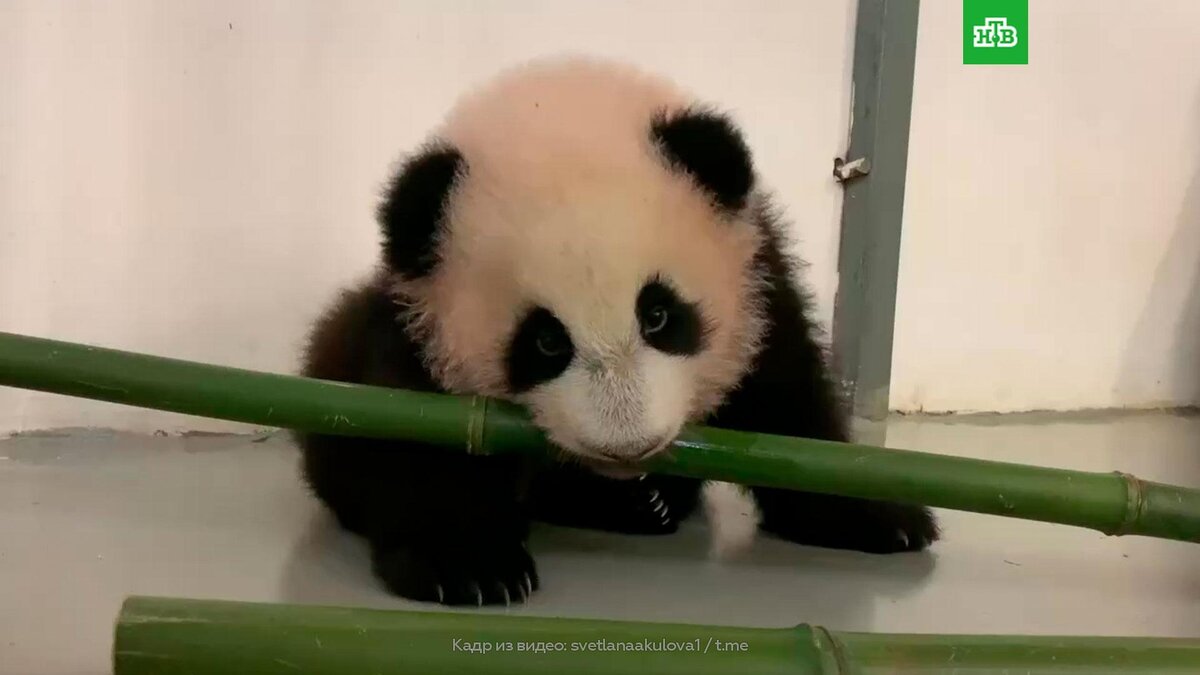 [ Смотреть видео на сайте НТВ ] В Московском зоопарке маленькая панда уже проявляет интерес к бамбуку и пытается его грызть. Детеныш панды из Московского зоопарка уже пытается грызть бамбук, повторяя за мамой Диндин. Этот момент попал на видео. Также маленькая бамбуковая медведица уже научилась ползать и даже уверенно стоять на четырех лапах. С каждым днем животное передвигается все увереннее. Рождение детеныша панды в Московском зоопарке — первый такой случай в России. Родителей — самца Жуи и самку Диндин — доставили в столицу России из Китая в 2019 году в честь 70-летия установления дипломатических отношений между странами. В настоящее время продолжается голосование по выбору имени для малышки. Москвичи могут отдать голос за одно из 10 предложенных имен. Среди вариантов — русские Маша и Катюша, а также Мо Мо (от первого слога слова «Москва»), Цзин Дин (златоглавая), Бай Хоа (белая березка) и другие. Присоединиться к голосованию можно на сайте или в приложении проекта «Активный гражда