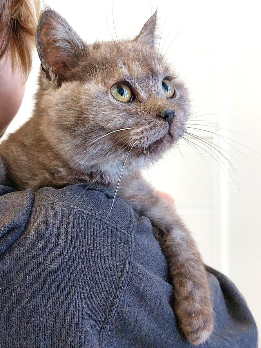 Но пусть чудеса на этом не заканчиваются — ведь Барни нужен настоящий дом, а не вот это вот все. Барни — потрясающий красавчик. У него набивная меховая шубка одновременно серого и коричневого цветов. Темно-серый нос выгодно оттеняет парочка белых усов (остальные усы тоже в наличии, но они шоколадного цвета). Матушка-природа знатно потрудилась, создавая такой шедевр!