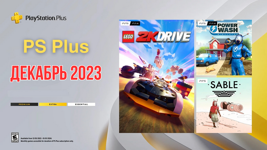 Невозмутимые сотрудники Sony в очередной раз никому ничего объяснять не станут. Почему после подорожания подписки на сервис PS Plus в раздачах по-прежнему не наблюдаются ААА-проекты пачками? Видимо, японцы таким образом пытаются устроить проверку на верность среди своих фанатов. Кто выдержит, тот и получит в итоге шикарную ежемесячную раздачу. LEGO 2K Drive — это сомнительный проект в жанре "Гонки". И это не мы так считаем, на это прямо намекают отзывы в Steam и на других площадках. Проект ориентирован, в первую очередь, на детскую аудиторию. PowerWash Simulator — это вообще нечто... Вы выступаете в роли мойщика автомобилей. И не только. Позже можно будет помыть целый марсоход, статуи, поезда, дома и т. д. Единственный проект, на который стоит обратить внимание, это Sable. Интересный инди-продукт с атмосферной рисовкой. Но, опять же, широким массам геймеров он не понравится, так как графика здесь на любителя. Обновление "Каталога игр" также не вызвало восторга. После подорожания подписки люди ожидают большего. Каталог обновился на 19 позиций: 14 новых проектов для владельцев Extra, Deluxe и Premium планов и остальные 5 — для обладателей премиальной подписки. Во что же, все-таки, можно будет поиграть в раздаче PS Plus декабрь 2023? Давайте посмотрим.