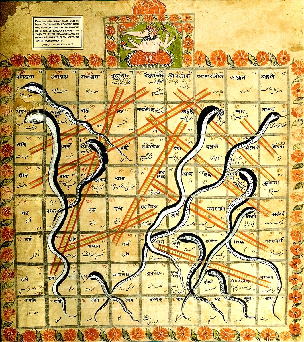 Игра носящая ведические знания, магическая игра или игра сознания? Этой игре 5000 лет, она имеет различные названия и немного отличающиеся формы, но общий смысл игры один. Одно из названий игры-Лила, основана на умственно-медитативных процессах. Корни игры берут начало в философии И-Дзина, имеют общую схожесть с глубиной арканов Таро, рун и других философских систем. Эту игру называют Игрой сознания, Лилой, есть и другие на разных языках. Цель игры освободить сознание оков и достигнуть состояния Мокши. В таких религиях как индуизм, ранний буддизм это освобождение от круга перерождений. То есть игра это жизнь. Играя в нее, человек принимает решения, несет ответственность за них, осознавая последствия этих решений. Каждый ход в игре и шаг моделирует ту или иную ситуацию, то есть формируются причинно-следственные связи, а это в свою очередь ведет к изменению сознания. Человек делает ходы в игре, которые испытывают человека на эмоции, тщеславие, честолюбие. Негативные действия приводят к