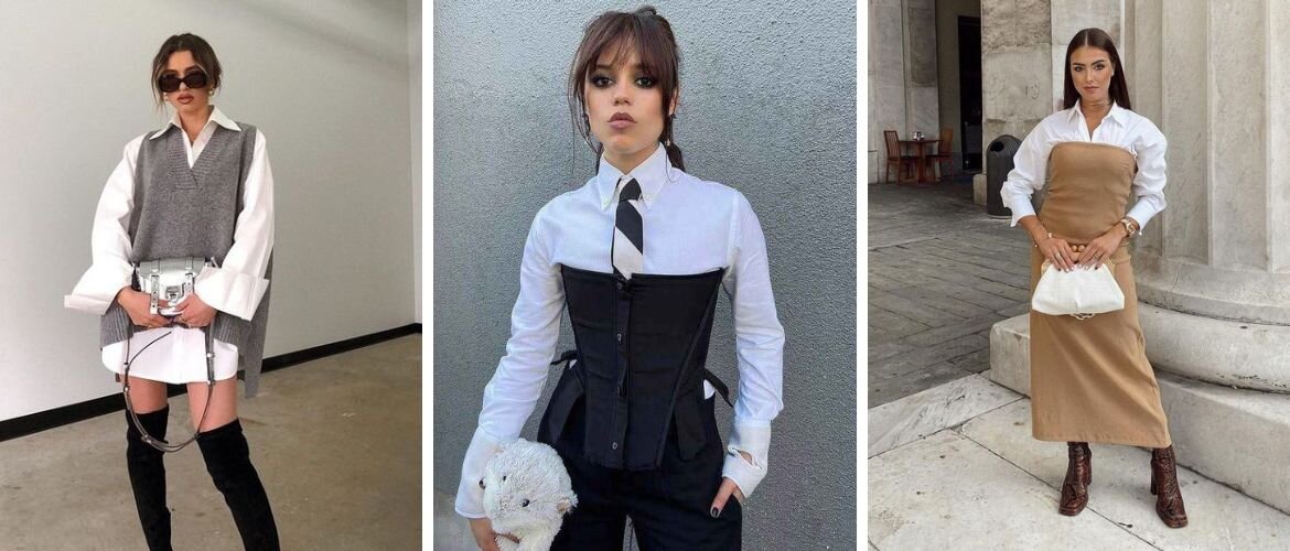 Женщины любят заимствовать элементы мужского гардероба. В холодное время года, когда актуальны многослойные образы, идеальным компаньоном свободная мужская рубашка. Ее можно успешно сочетать с различной одеждой, даже летней, придавая ей возможность использования в зимний период. Смотрите на Joy-pup нестандартные способы сочетания мужской рубашки, чтобы придать образу нотку оригинальности и современности. Поверх водолазки Зимой в одной рубашке может быть немного прохладно, поэтому стоит добавить еще один слой. Стильный способ подчеркнуть мужскую рубашку — надеть под нее тонкую водолазку. Оставьте несколько верхних пуговиц расстегнутыми или используйте ее как накидку. Для этой цели идеально подойдет модель со свободным кроем и удлиненной длиной. Мужскую рубашку можно сочетать с макси-юбкой, джинсами и классическими брюками. Со свитером Сочетание рубашки и свитера уже много лет является проверенной классикой. Это одна из самых красивых комбинаций, которые вы можете составить с мужской руб