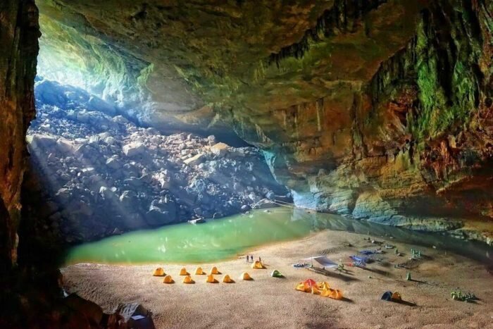 Шондонг (вьетн. hang Sơn Đoòng) - самая большая пещера в мире, расположенная во Вьетнаме. Она находится в провинции Куангбинь, в Центральном Вьетнаме, в национальном парке Фонгня-Кебанг, в 500 километрах к югу от Ханоя и в 40 километрах от центра провинции - Донгхоя. Пещера была известна местным жителям с 1991 года, но ее настоящая красота и масштабы были обнаружены только в апреле 2009 года группой британских спелеологов. Шондонг впечатляет своими размерами и уникальной природой. Внутри пещеры есть подземная река, которая затапливает некоторые ее части во время сезона дождей. Исследования показали, что пещера имеет протяженность около 6500 метров и в некоторых местах достигает высоты 200 метров и ширины 150 метров. Это делает Шондонг самой широкой и высокой пещерой в мире. Общий объем пещеры оценивается в 38,5 миллионов кубических метров. В некоторых местах пещеры, где свет проникает через провалы свода, можно увидеть растения, такие как трава и деревья. Это создает удивительный и жив