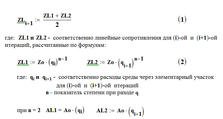 Из системы формул (3) и (4) получается две формулы (5 и 7) для расчёта итерационной формулы (линейного сопротивления):