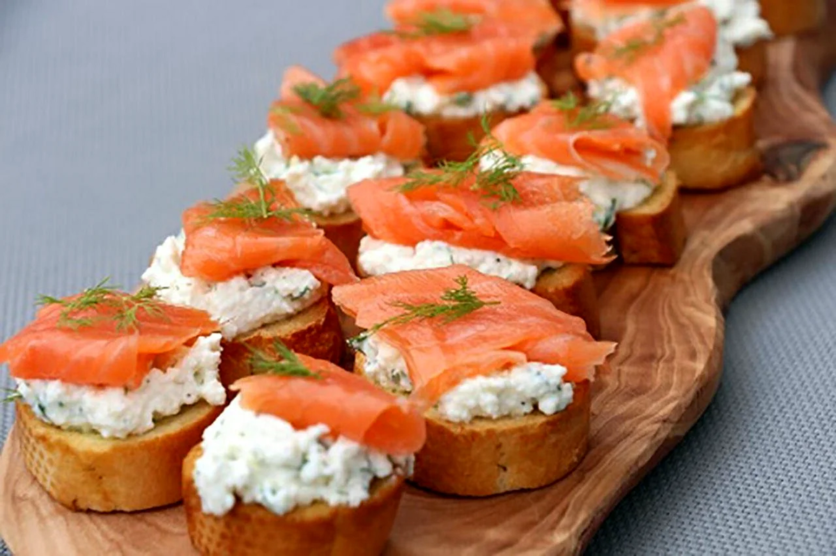 Без бутербродов невозможно себе представить хороший новогодний стол. Являясь холодной закуской, они, обычно, открывают праздничную трапезу, утоляют первый голод гостей, пока горячие блюда еще не поданы на новогодний стол. Новогодние бутерброды отлично расходятся и далее, по ходу застолья в качестве закуски к различным праздничным напиткам. Какие бутерброды с рыбой сделать на Новый год 2024 1. Пикантные вкусные тосты со сливочным сыром, шпротами и овощами Сочетание нежного сыра, сочных овощей и копченой рыбки точно не оставит никого равнодушными. Подача такой закуски будет яркой, и наверняка взволнует аппетит любителей покушать.