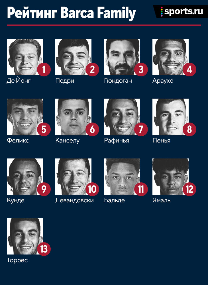 Разбираемся как сыграла «Барселона» на индивидуальном уровне 13. Ферран Торрес – имел возможность перевернуть всю игру одним касанием, но не повезло. 12. Ламин Ямаль – в этот раз его выход стал не таким ярким и эффективным. 11. Алехандро Бальде – молодой талант перестает быть молодым и перспективны. Полная стогнация. 10. Роберт Левандовски – главный форвард команды не забивает на выезде с сентября месяца. 9. Жюль Кунде – хотелось бы видеть более убедительную игру в центре обороны от футболиста, который хочет играть именно на этой позиции. 8. Иньяки Пенья – очень выручил команду на старте матча и вряд ли имел шансы спасти в момент с голом. 7. Рафинья – автор ассиста из не самого сложного положения и автор впустую потраченого выхода один на один, который мог решить исход матча. 6. Жоау Канселу – стал самым обостряющим футболистом с игры, но все же это не помогло команде. 5. Жоау Феликс – автор единственного гола и игрок, который неплохо помогал команде с прессингом и созданием пространст