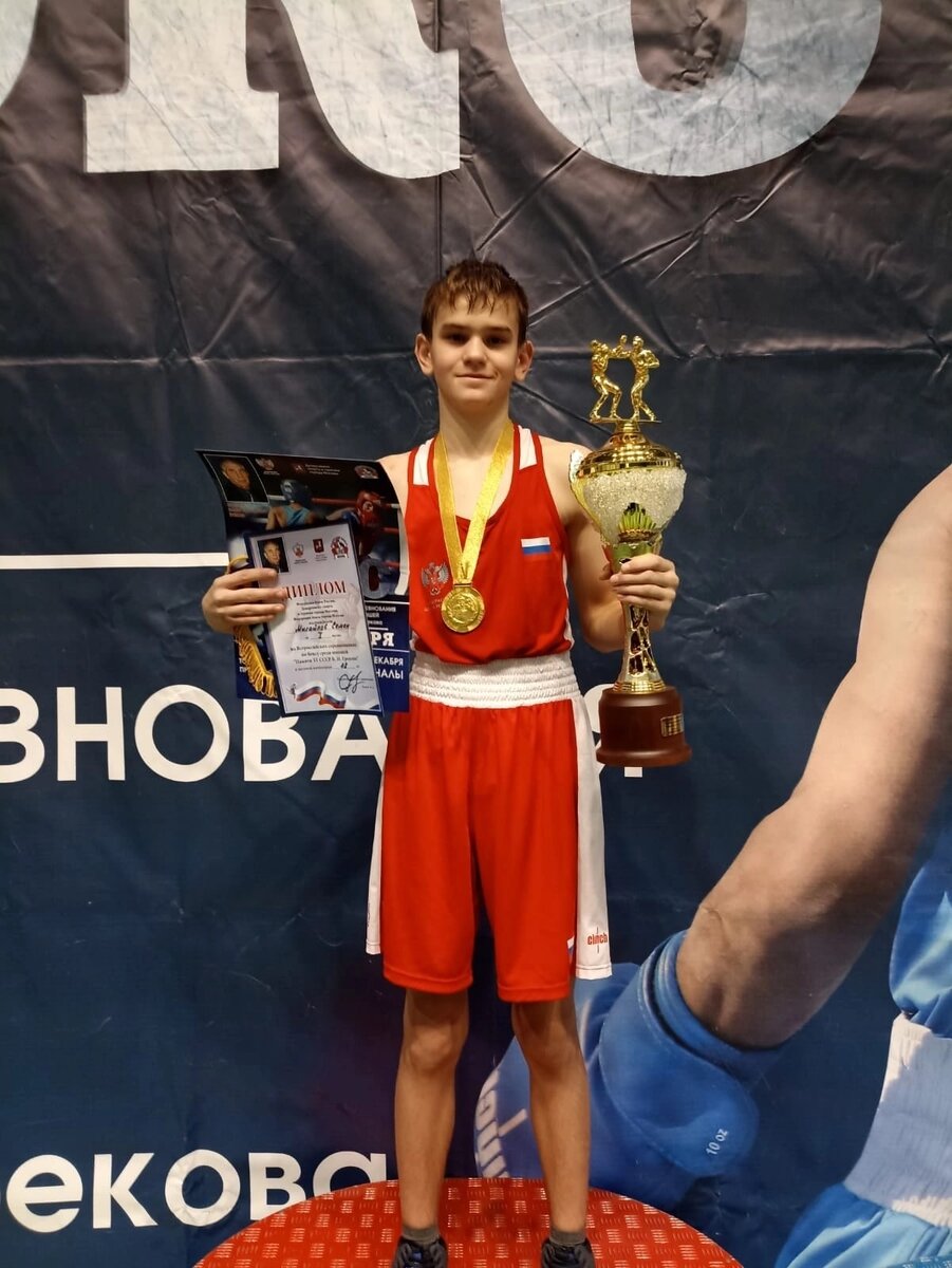 Семён Михайлов одержал победу в финале Всероссийских соревнований по боксу Памяти ЗТ СССР Б.Н.Грекова! Благодаря этой победе Семён вошёл в основной состав сборной России юношей 13-14 лет,а также завоевал путевку на Первенство России 2024. Поздравляем Семёна и его тренеров с победой! Семён,ты лучший! Спортсмена подготовили тренеры: Михайлов Роман и Шашкин Максим.