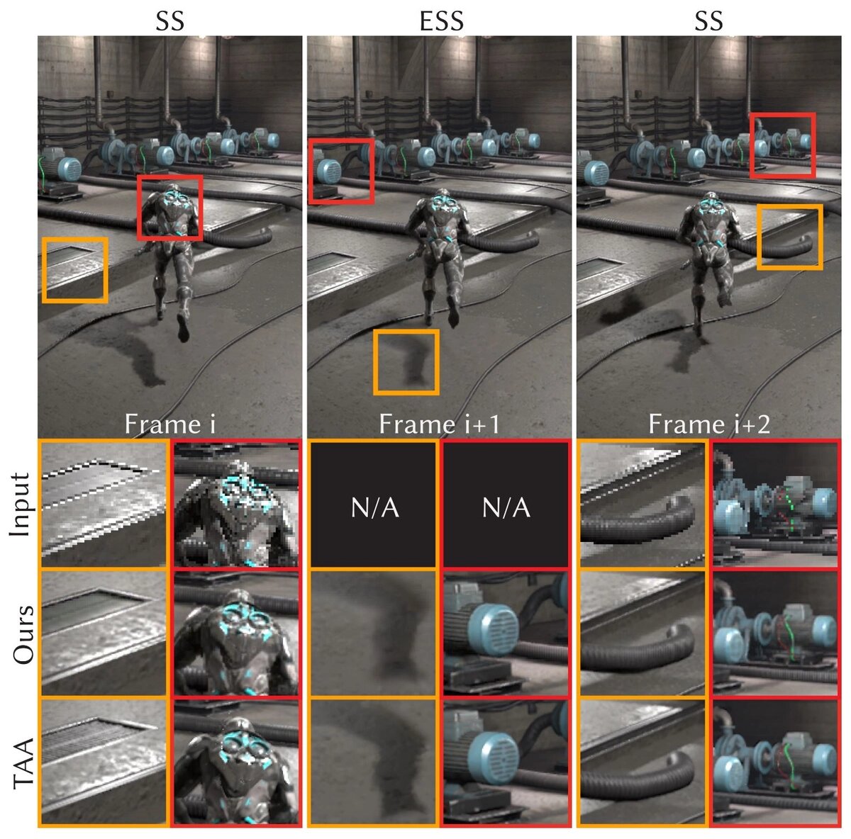 Компания Intel рассказала о своей технологии генерации промежуточных кадров ExtraSS, которая должна стать ответом на FSR 3 и DLSS 3, но с одним важным отличием. Дело в том, что "красная" и "зеленая" генерации промежуточных фреймов используют интерполяцию кадров, а потому им нужен прошлый и будущий отрендеренные кадры, но ExtraSS будет экстраполировать фреймы на основе только прошлых кадров. Технология должна использовать векторы движения с G-буфером для емкостно-темпоральной экстраполяции кадров и "легкую" потоковую модель для улучшения детализации в движении. Продемонстрированные результаты работы технологии показали схожие по качеству с обычными темпоральными технологиями апскейла кадры, но при лучшей производительности.