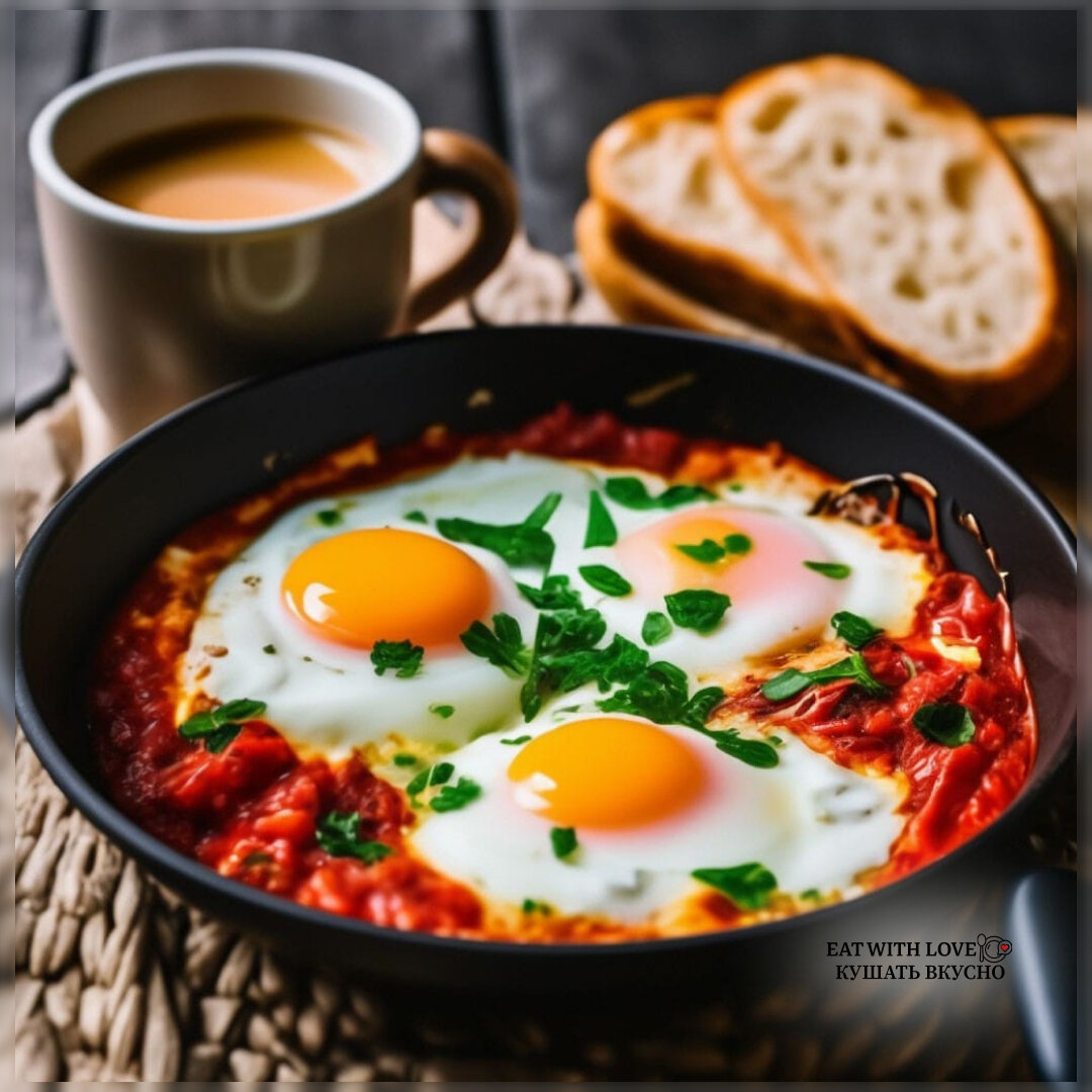 Ингредиенты: -яйца, сколько съедите -2 помидоры небольшие -1 болгарский перец небольшой -1 лук небольшой -1 зубчик чеснока -1 ст.л. томатной пасты -оливкое масло для жарки -сахар по вкусу -соль, свежемолотый черный перец -1 ст.л. сметаны -зелень на ваш вкус Способ приготовления: -нарезаем лук, перец, помидоры и измельчаем в блендере -разогреваем оливковое масло, обжариваем чеснок, затем убираем его и вливаем томатную смесь -добавляем томатную пасту, соль, сахар (если кисло), перец. Все хорошо перемешиваем -вбиваем яйца, солим, накрываем крышкой и доводим до готовности яйца. Не передержите, желток должен слегка растекаться -при подаче, сверху выкладываем сметану, либо то что вы любите. Добавляем зелень, молотый перец и едим, лучше из сковородки 😋❤️